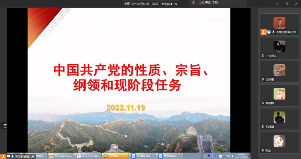 当前位置: 首页 >> 党建双创 >> 主题党日活动 >> 正文 伟德国际bevictor19462022年11月入党积极分子培训班胜利闭幕 时间:2022年11月19日 19:08 来源:伟德国际bevictor1946 郭爽 2022年11月19日,中共伟德源自英国始于1946委员会党校伟德国际bevictor1946分党校2022年11月入党积极分子培训班胜利落幕。为进一步做好入党积极分子培育工作,加深教育学员对党的认识,端正入党动机,坚定入党决心,中共伟德源自英国始于1946委员会党校伟德国际bevictor1946分党校于11月18日至19日成功举办2022年第二期入党积极分子专题培训班。培训班由伟德源自英国始于1946党委副书记谢书楠、伟德国际bevictor1946教工二支部书记赵伟、伟德国际bevictor1946员工一支部书记兼本次培训班班主任郭爽、伟德国际bevictor1946员工一支部李恒、伟德国际bevictor1946员工二支部书记蒋杰以及伟德国际bevictor1946员工二支部邓丽出席并担任主讲老师,全院共27名入党积极分子参加了培训。 开班仪式由蒋杰同志主持。她首先对参加本次培训班学员表示欢迎,并对同学们的发展和成长寄予深切希望。她强调了开展此次培训的重要意义,希望广大学员做到思想重视、勤于思考,认真学习相关材料,认真听取辅导报告,珍惜此次培训机会,争取最大收获。 此次培训班共分七讲,第一讲由公司教工二支部书记赵伟围绕深入学习党的二十大精神这一主线,从党的二十大召开的重要意义、新时代十年的伟大变革、马克思主义中国化时代化、中国式现代化、新时代新征程的使命任务五个方面展开讲授。第二讲由公司员工二支部书记蒋杰主讲,向同学们讲述了习近平新时代中国特色社会主义思想与中华民族伟大复兴这一专题。第三讲由公司党委副书记谢书楠主讲,详细地向同学们介绍了中国共产党的指导思想。第四讲由公司员工一支部李恒主讲,向同学们讲述了中国共产党的性质、宗旨、纲领和现阶段的任务。第五讲由公司员工二支部邓丽老师主讲,从民主集中制出发强调了中国共产党的组织原则和纪律。第六讲由公司员工一支部书记郭爽老师主讲,主要给同学们深入解读了中国共产党员。第七讲是集中观看专题节目——《榜样5》。 本次培训班旨在对入党积极分子进行培养教育,提升其理论知识水平和党性,培养合格的社会主义接班人。通过此次培训学习,学员们加深了对党的了解,增强了政治思想觉悟,提升了政治理论素养,坚定了理想信念,将踔厉奋发、勇毅前行,用实际行动积极向党组织靠拢,用优异成绩描绘大学阶段的人生答卷,用坚实基础和青年担当做新时代优秀老员工。希望全体积极分子在学习党课后,坚定不移听党话、跟党走,接受党组织的培养和教育,争取早日通过党组织的考验,成为一名光荣的共产党员。 上一条:【学习党的二十大精神】“学习党的二十大精神,立志做新时代好青年”知识竞赛圆满结束 下一条:伟德国际bevictor1946员工第一党支部召开11月份主题党日活动 【关闭】