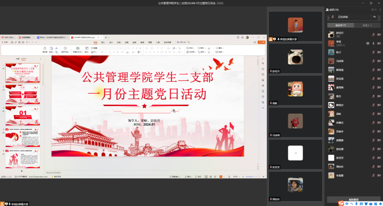 当前位置: 首页 >> 党建双创 >> 主题党日活动 >> 正文 伟德国际bevictor1946员工二支部 召开2024年1月主题党日活动 时间:2024年01月19日 11:25 来源:伟德国际bevictor1946 李恒 2024年1月18日,伟德国际bevictor1946员工二支部在线上开展2024年1月主题党日活动。 梁蛟、彭钰丹同志分别领学了习近平总书记在党外人士座谈会上的重要讲话精神、习近平主持的中共中央政治局召开的会议、中央农村工作会议精神以及习近平在纪念毛泽东同志诞辰130周年座谈会上的讲话等学习内容。支部书记蒋杰领学2024年新年贺词,她指出每年新年贺词内容不仅同国家发展紧密相连,也同我们身边的变化息息相关,希望大家通过对其进行学习,可以提升我们对世界发展认识的水平。 本次组织生活会顺利开展,党员同志们认真学习和分享交流,一致表示通过对党的知识学习,能够正确认识和学习世界,在面对发展变化的大环境时,努力充实自我、提升自我,培养自我适应市场环境的能力,科学思考现实问题。 上一条:伟德国际bevictor1946员工第一党支部召开2024年2月主题党日活动 下一条:伟德国际bevictor1946员工第一党支部召开2024年1月主题党日活动 【关闭】