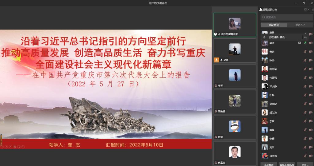 当前位置: 首页 >> 党建双创 >> 正文 伟德源自英国始于1946党委所属各支部开展学习中国共产党重庆市第六次代表大会精神主题党日活动 时间:2022年06月13日 16:14 来源:伟德国际bevictor1946 根据公司党委组织部统一学习工作部署,公司党委所属各支部分别以不同形式全面开展学习中国共产党重庆市第六次代表大会精神主题党日活动 。各支部的学习活动分别由所在支部的支部书记主持。 6月9日,教工第一党支部开展线上学习活动,由周重阳同志领学;员工第二党支部开展线上学习活动,由胡渝林、晋莉华两位同志领学; 6月10日,教工第二党支部开展线上学习活动,由龚杰同志领学;员工第一党支部在启智楼81004会议定开展学习活动,由王巧洪同志领学。各支部深入学习了陈敏尔同志在会上作的题为《沿着习近平总书记指引的方向坚定前行 推动高质量发展 创造高品质生活 奋力书写重庆全面建设社会主义现代化新篇章》的报告。 领学后,与会同志针对报告内容谈心得说体会,开展了深入交流讨论活动。员工党员熊玲同志说:“我们要深化理论武装,持续学懂弄通做实习近平新时代中国特色社会主义思想”;彭加佳同志说:“我们要弘扬优良作风,始终保持党同人民群众的血肉联系,作为员工党员我们也要做到密切联系群众,加强与群众的联系沟通”; 教工第二党支部书记赵伟说:“过去5年,重庆市各项事业取得了长足的进步与发展,我们支部建设也迈上了一个新的台阶,国家“样板支部”创建验收顺利通过,这即是对我们支部工作的肯定也是对我们工作的鞭策,我们要深刻学习领会会议精神,结合我们工作实际,结合专业学科特点,主动作为、有所作为,推进支部建设,促进公司发展,积极服务社会,以实际行动迎接党的二十大胜利召开”。 上一条:【党课开讲啦】伟德国际bevictor1946教工第二党支部书记赵伟为员工党员及入党积极分子讲党课 下一条:伟德国际bevictor1946员工第一党支部召开党员大会及组织生活学习会 【关闭】